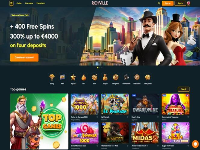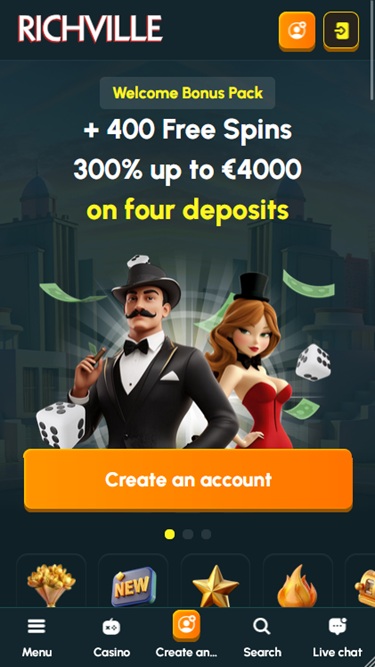Bônus e promoções são partes integrantes de qualquer cassino online moderno, e o Richville não perdeu a oportunidade de recompensar seus jogadores com inúmeros bônus durante sua estadia. O pacote de boas-vindas está disponível, projetado para aprimorar a experiência inicial de jogo para novos jogadores. Os jogadores já cadastrados terão a opção de aproveitar diversos bônus semanais e ofertas de cashback.