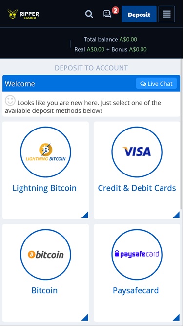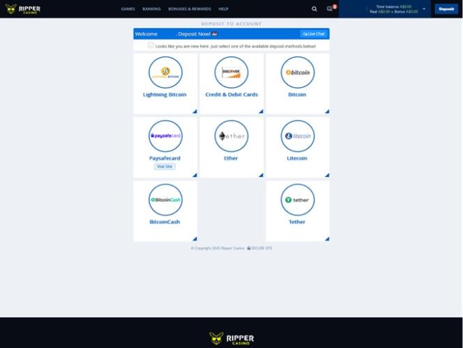 No que diz respeito às opções de caixa e bancárias no Ripper, existem vários métodos de pagamento para depósitos e saques . Este site de jogos, que aceita jogadores dos EUA, também oferece criptomoedas, além de outras opções como cartões de pagamento e diversas carteiras eletrônicas populares entre os apostadores.