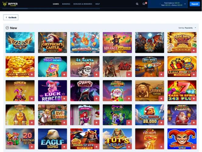 O Ripper Casino possui uma categoria interessante de jogos de slots, com vários títulos atraentes para escolher: Pot of Gold, Wild Bonus Re-Spins, Red Hot Volcano, Catsino, Wizarding Wins, Surfin' Reels, Cash Pig, Golden Profits, Lava Loca, Wild Ocean, Greek Legends, Asia Wins 777, Aztec Palace, Bang Bang, Booming Seven Deluxe, Burning Classics, Wombaroo Hold and Re-Spin, Majestic Safari, Arabian Spins e muito mais.