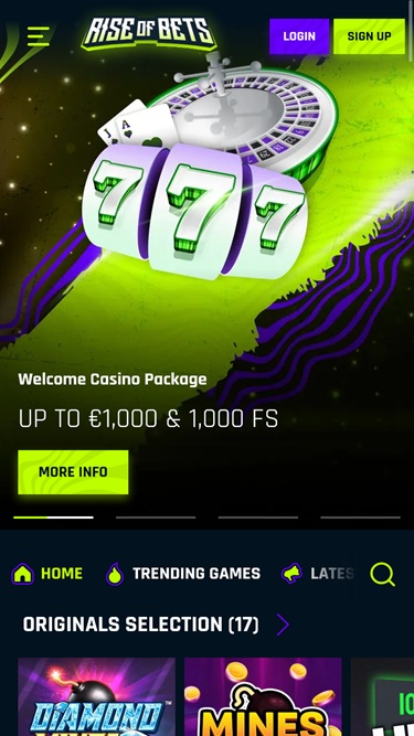 Se você deseja experimentar todos os jogos no seu dispositivo iOS ou Android, ficará feliz em saber que o site foi totalmente otimizado para jogos em dispositivos móveis. Não há nenhum aplicativo separado que você precise baixar. Em vez disso, basta acessar sua conta do Rise of Bets Casino pelo navegador do seu celular e começar a aproveitar todos os jogos.