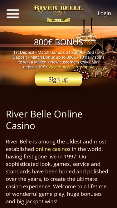 Não gostoHá alguns anos, o River Belle era um dos melhores cassinos com software para desktop da Microgaming. No entanto, relatos de práticas comerciais duvidosas por parte da operadora tornaram-se mais frequentes. Portanto, o cassino deve ser evitado. Existem muitos cassinos online melhores.