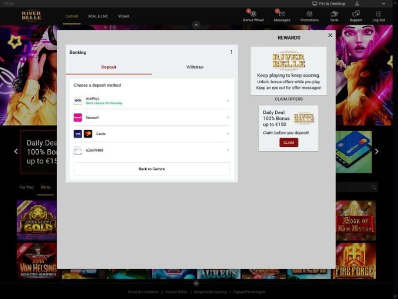 Eu tinha uma conta no RiverBelle há alguns anos e a encerrei. Nunca ganhei, e pensei que investi uma boa quantia de dinheiro. Agora, decidi dar outra chance. Sou membro de um cassino irmão e tenho tido sorte neles. Abri uma nova conta, estou depositando e jogando torneios gratuitos.