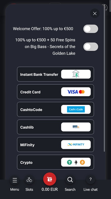 Deposit between 16:00 PM CEST Friday and 11:59 PM CEST Sunday and receive 50% up to €500 and an extra 20 Free Spins on Big Bass Bonanza from Pragmatic Play. The bonus is valid on one deposit made between Friday 4:00 PM and Sunday 11:59 PM every weekend. The bonus is valid for 7 days after activation.