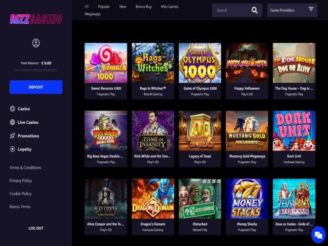 Independentemente disso, os jogadores não valorizam um cassino online apenas pela sua aparência, mas sim pela oferta de jogos que os entretenham. Felizmente, o Rizz Casino não deixa a desejar nesse quesito, já que a marca conseguiu reunir uma coleção considerável de jogos de azar em diversos formatos e estilos.