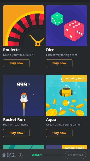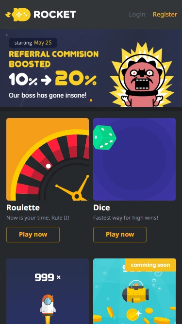 A grande maioria dos jogos oferecidos no Rocket.run são jogos de salão exclusivos, nos quais você tenta escolher o resultado certo para ganhar.Problemas do jogador