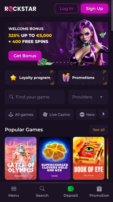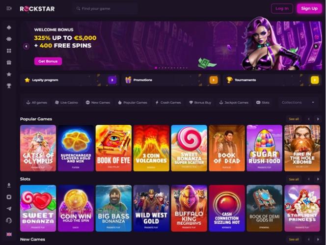 O Rockstar é um enorme cassino online que recebe jogadores da Romênia, Espanha, Portugal, França, Bélgica, Itália e Grécia. Ele promete uma seleção abrangente de jogos de cassino, incluindo caça-níqueis com dinheiro real, jogos com crupiês ao vivo, jogos de mesa e jogos de azar instantâneos, além de um plano promocional incrível com bônus, eventos e torneios.