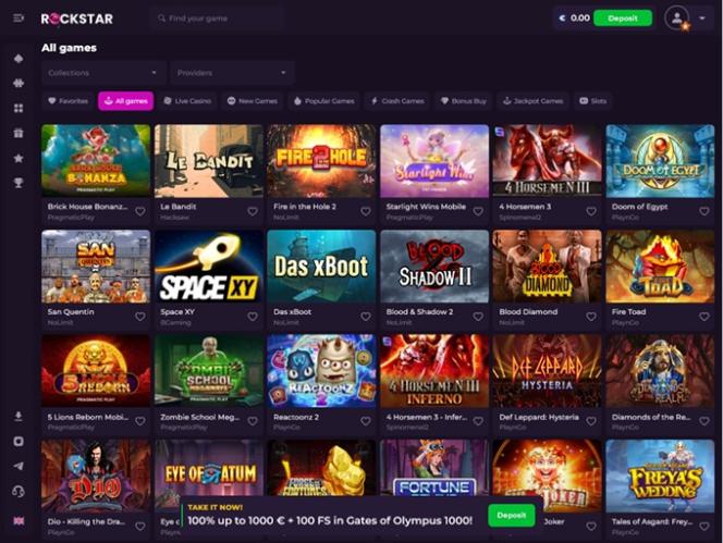 O mesmo pode ser dito do Rockstar Casino. Esta marca apresenta uma seleção impressionante de jogos, graças à equipe que obteve licenças de mais de 45 fornecedores de software. É importante ressaltar também que a maioria dos desenvolvedores de software presentes são considerados entre os melhores do setor.