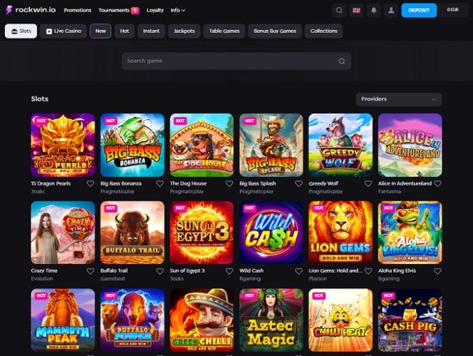 A Rockwin colabora com alguns dos desenvolvedores de jogos mais renomados, como Evolution Gaming , BetSoft, Wasdan, Yggdrasil... Esses e muitos outros fornecedores de software para cassinos oferecem conteúdo de alta qualidade aos jogadores. Eles podem experimentar uma enorme coleção de jogos de caça-níqueis, jogos instantâneos e jogos de mesa clássicos, sem deixar de mencionar a impressionante seção de jogos com crupiê ao vivo. Aqui estão alguns dos títulos disponíveis: