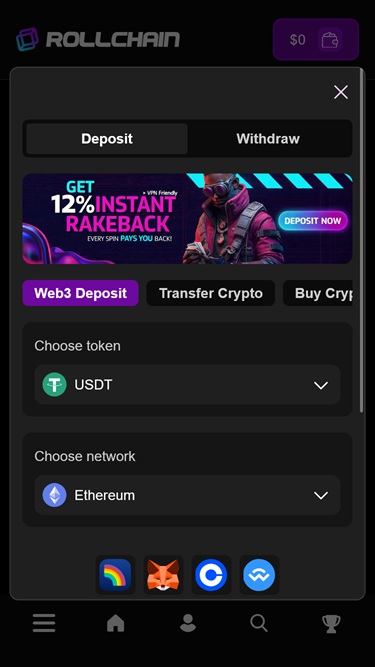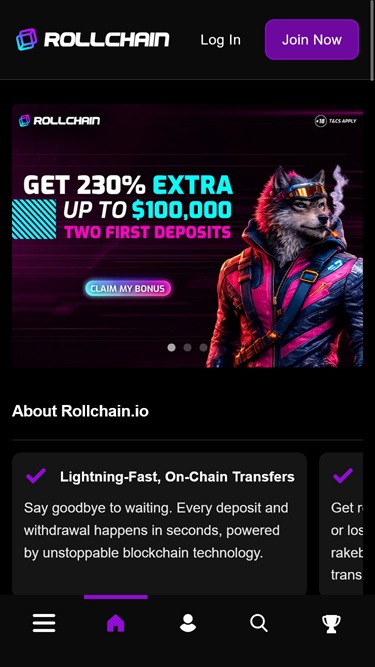 O operador projetou uma plataforma perfeitamente otimizada para todos os dispositivos portáteis e desktops. Assim, independentemente de os jogadores preferirem jogar em smartphones ou qualquer outro dispositivo adequado para jogos de azar em movimento , ou se optarem por telas maiores, como computadores pessoais, a sua experiência de jogo online será igualmente boa. O site do Rollchain Casino é impecavelmente responsivo, portanto, se tiver uma ligação de internet estável, pode contar também com tempos de carregamento de jogos rápidos e muita diversão por aqui.