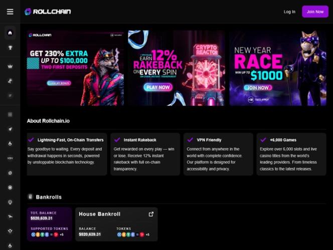 O Rollchain Casino é uma marca de jogos de azar online voltada para jogadores do Canadá, Alemanha, Nova Zelândia... O cassino é licenciado e regulamentado pelo Governo da Ilha Autônoma de Anjouan, União das Comores.