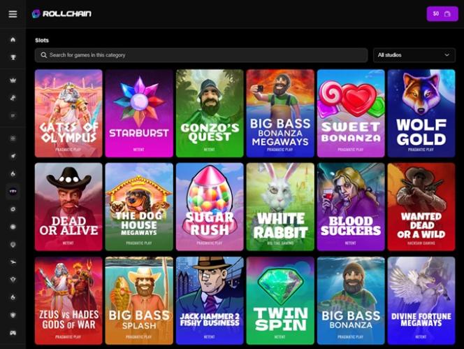Este cassino colabora com estúdios de jogos que produzem conteúdo popular, e a extensa lista de parceiros do operador inclui grandes nomes da indústria, como Evolution Gaming, NetEnt, Novomatic, Relax Gaming e Pragmatic Play , entre outros. Esses e muitos outros desenvolvedores de software de cassino fornecem ao Rollchain jogos de alta qualidade e muita diversão. Aqui, os jogadores podem navegar por uma rica biblioteca de jogos e explorar novos jogos adicionados regularmente.