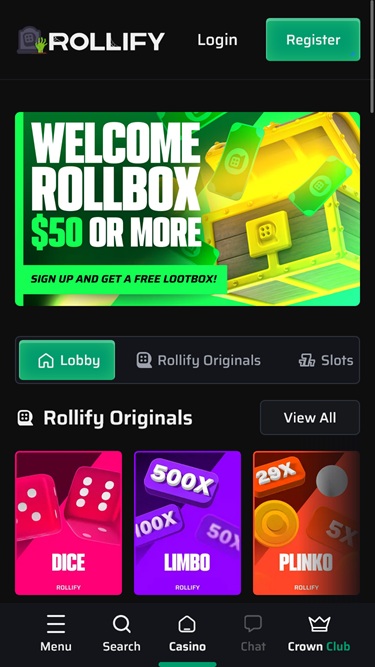Capturas de tela do Rollify Casino