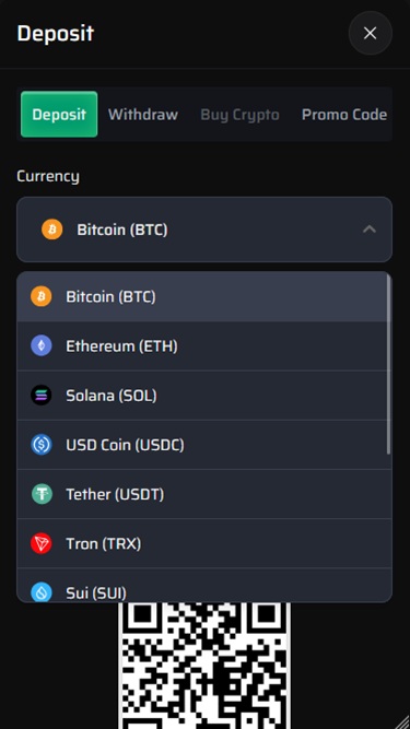 As criptomoedas que você poderá usar neste cassino são Bitcoin, Ethereum, Litecoin, Solana, Toncoin, Tron, USD Coin e Tether.