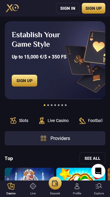 Ao acessar o site da marca, você será recebido por uma página inicial que exibe as principais promoções em destaque e categorias de jogos separadas em títulos mais jogados, lançamentos recentes, favoritos do cassino ao vivo, jackpots, compras de bônus, etc. A operadora também categorizou os jogos de forma prática, com base em suas equipes e fornecedores de software.