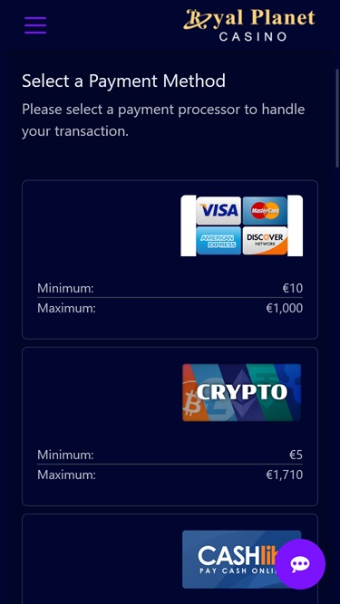 O Royal Planet é um cassino decente que utiliza o software da Rival. Eles oferecem uma variedade de caça-níqueis, muitos bônus e promoções interessantes. Ainda não precisei usar o atendimento ao cliente e não tive a sorte de fazer um saque com meu único depósito.