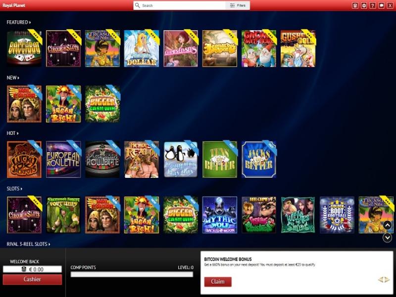 O Royal Planet Casino é alimentado por BetSoft, Rival, Saucify, Fresh Deck Studios, Qora Games and SmartSoft Gaming e os jogos do casino estão disponíveis tanto para download como através de uma plataforma online de jogo instantâneo, que permite jogar diretamente no seu navegador. O casino também oferece suporte para dispositivos móveis, permitindo jogar em tablets e smartphones.Outros jogos