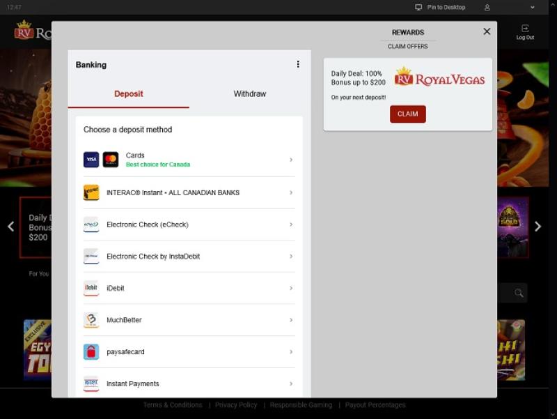 Vim aqui para dar uma olhada no que pode estar acontecendo no Royal Vegas. Não sou um depositante regular, mas fiz alguns depósitos. Já depositei em outros cassinos Microgaming e não consigo depositar em todos. Jogo os torneios gratuitos aqui há algum tempo e notei que eles não estão mais disponíveis.