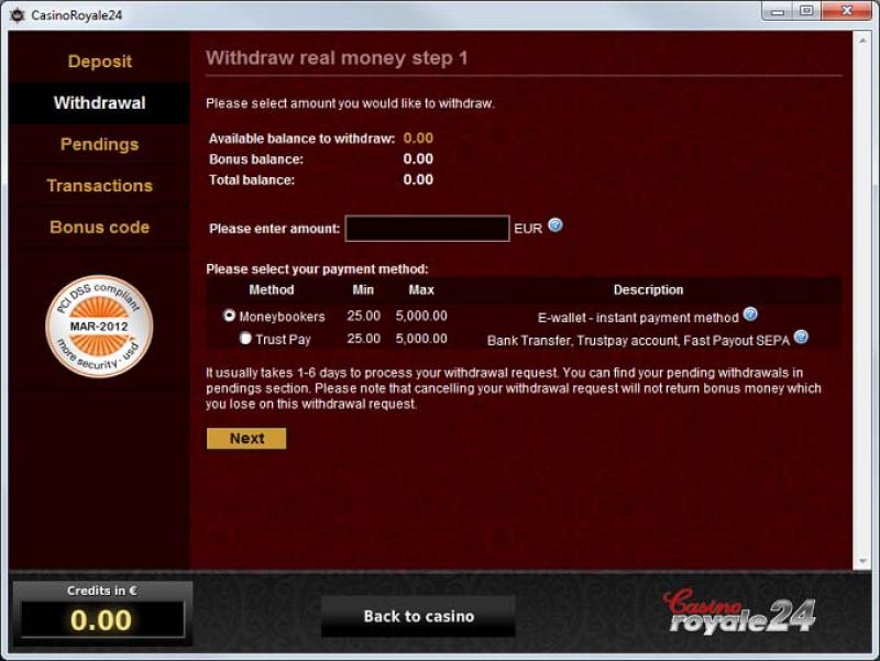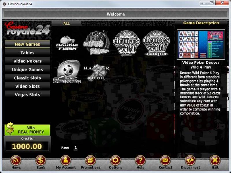 O Casino Royale24 é alimentado por Tom Horn Gaming e o software do casino está disponível através de uma plataforma baseada na web.Opções bancárias no Casino Royale24