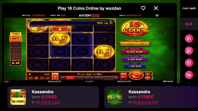 O Run4Win leva esse conceito a um nível totalmente diferente, pois oferece uma vasta gama de fornecedores de software para escolher. Para citar apenas alguns, você encontrará Relax Gaming, Red Tiger Gaming, Hacksaw, Evolution Gaming, Quickspin , NetEnt, etc.
