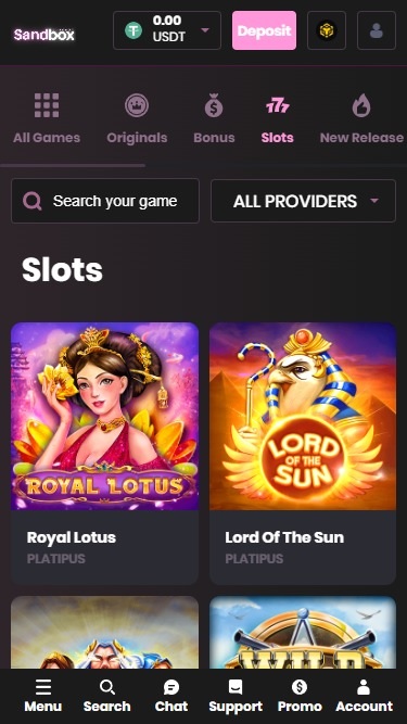 Felizmente, a SandBox fez uma boa seleção de colaboradores, então os jogadores podem esperar experimentar jogos produzidos por algumas das empresas mais conhecidas. A biblioteca de jogos é fornecida pela BetSoft, Evolution, BigTime Gaming, Fugaso e outras empresas que oferecem jogos em diversas categorias de cassino.