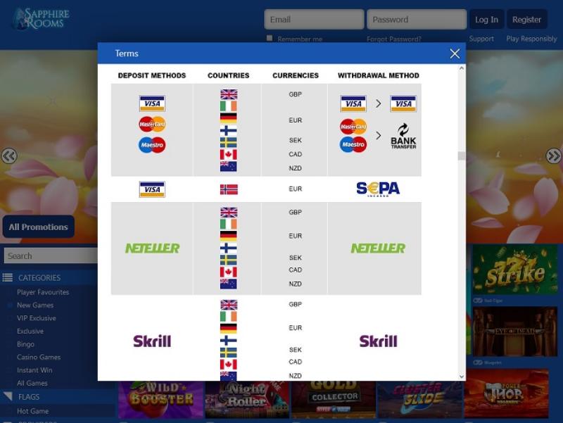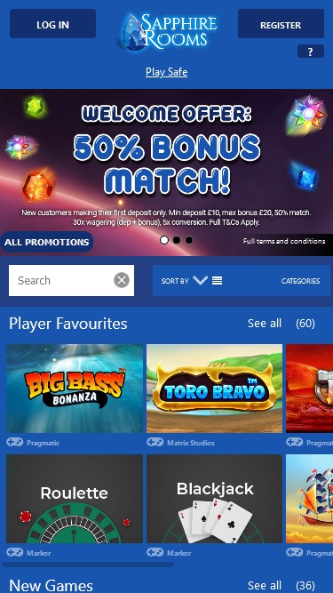 O Sapphire Rooms Casino é um site de apostas online fundado em 2014 e operado pela Nektan Ltd. O cassino é focado em jogos para dispositivos móveis e oferece um site e plataforma especificamente adaptados para apostas em smartphones e tablets. O cassino conta com uma equipe de gestão sólida, excelentes tempos de pagamento e baixos requisitos de apostas em bônus, o que faz do Sapphire Rooms Casino uma excelente opção de cassino móvel para você jogar em qualquer lugar.