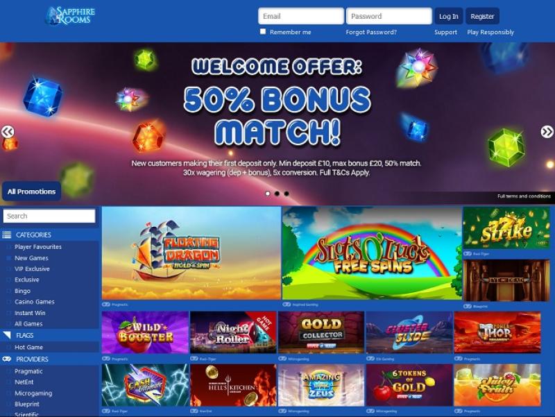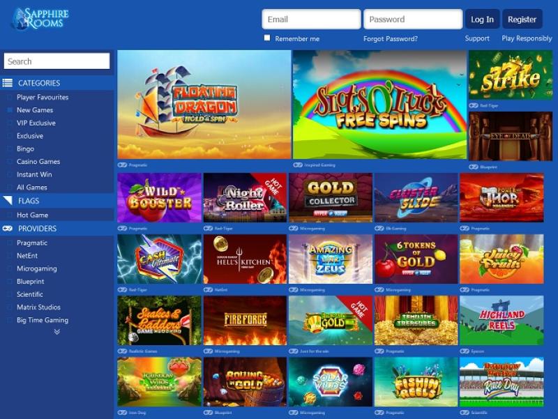 O Sapphire Rooms Casino é operado pela Microgaming, Net Entertainment, Big Time Gaming, ELK Studios, EYECON, Habanero Systems, lightningboxgames, Rabcat, Yggdrasil, Realistic Games, Pragmatic Play, Red Tiger Gaming, IGT, Skillzzgaming, Triple Edge Studios, Northern Lights Gaming, Stormcraft Studios, All41 Studios, Gameburger Studios, Slot Factory, Neon Valley Studios, Golden Rock Studios, SpinPlay Games, GONG Gaming, Buck Stakes Entertainment, Games Global, Blueprint Gaming, Merkur Gaming, Nektan, NextGen, NYX Interactive, Inspired Gaming, SG Interactive, Scientific Games, Iron Dog Studio, Foxium, Just For The Win, PearFiction Studios, Slingshot Studios, Rocksalt Interactive, 4ThePlayer, Gamevy, Crazy Tooth Studio, Alchemy Gaming, ReelFeel Gaming, Snowborn Games, Hacksaw Gaming and Aurum Signature Studios e seus jogos são oferecidos por meio de uma plataforma de jogo instantâneo baseada na web, que permite jogar diretamente pelo navegador do seu celular. O jogo também é compatível com computadores, permitindo que os jogadores joguem pelo navegador.