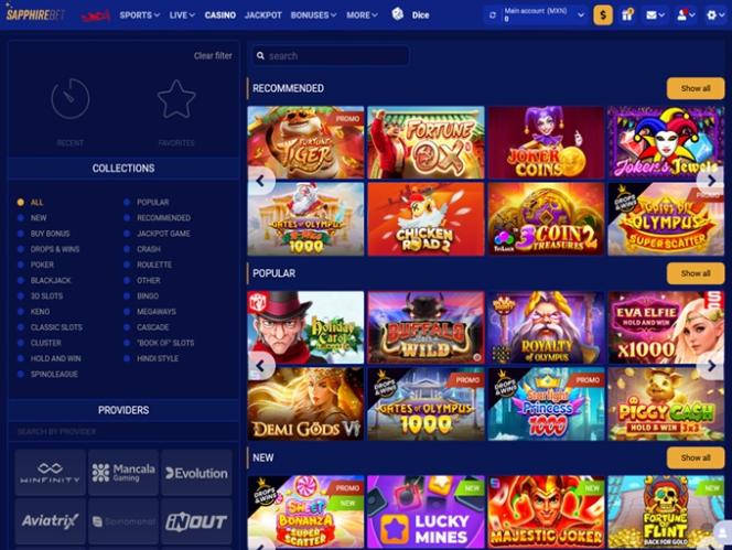 O Sapphirebet Casino é uma vasta plataforma de jogos de azar online, projetada para atrair jogadores do Brasil, Noruega, Polônia e Ucrânia, oferecendo uma biblioteca completa de jogos de azar e opções de apostas esportivas. O cassino online é enorme e permite que os jogadores explorem milhares de jogos, incluindo caça-níqueis com dinheiro real, jogos com crupiês ao vivo, jogos de crash, bingo e jogos de mesa, tudo isso com um robusto programa promocional repleto de bônus.