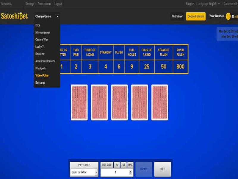 SatoshiBet não recebeu o endosso do Wizard of Odds.
