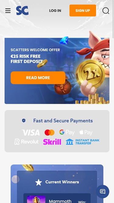 Definitivamente, uma pontuação alta para o Scatters Casino! Eles não só têm uma versão mobile disponível, como também são um dos poucos cassinos online que conheço que oferecem jogos de cassino sem apostas, mas apenas para o seu programa de pontos de fidelidade. É por isso que jogo os jogos deles o máximo que posso para poder aproveitar seus generosos benefícios.