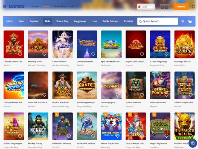 O Scatters é alimentado por BetSoft, Ezugi, Habanero Systems, Play'n GO, playson, Quickspin, Thunderkick, Vivo Gaming, Yggdrasil, Endorphina, Wazdan, Pragmatic Play, Nolimit City, Spinomenal, Red Rake Gaming, Platipus Gaming, BGAMING, Fazi, Evoplay, Pocket Games Soft, Bulletproof Games, Gluck Games, Mancala Gaming, 7Mojos, HungryBear Gaming, UP Games, Tom Horn Gaming, BlueOcean Gaming, Reflex Gaming, Wild Streak Gaming, 4ThePlayer, AvatarUX, Gamevy, ReelPlay, Boomerang Studios, Hacksaw Gaming, Bang Bang Games, Peter And Sons, Absolute Live Gaming, Religa, TaDa Gaming, Winfinity, Spribe, 1spin4win, Reel Kingdom, NowNow Gaming, VoltEnt and Kitsune Studios e os jogos do cassino são fornecidos por meio de uma plataforma online que carrega diretamente no seu navegador de internet. O site tem um visual agradável e é fácil de navegar, além de contar com suporte para dispositivos móveis, permitindo que você jogue pelo seu smartphone ou tablet.