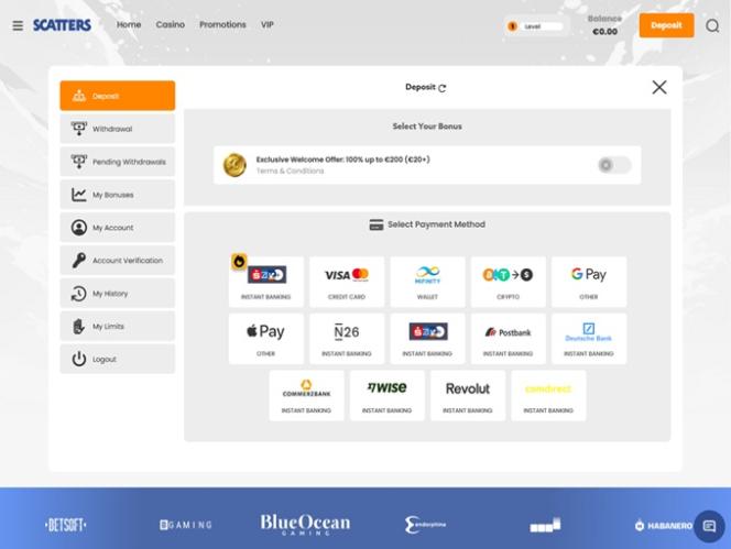 GosteiExperimentei o cassino Scatters há alguns dias e gostei bastante. Aproveitei o bônus de boas-vindas e gostei do fato de não ser um bônus de boas-vindas convencional, mas sim uma segunda chance. Perdi meu depósito inicial e recebi o bônus de boas-vindas como cashback.