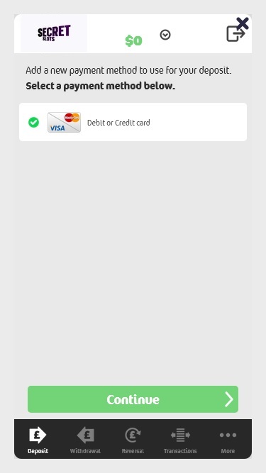 Na minha experiência, o Secret Slots é um cassino generoso; eles oferecem giros grátis com frequência, embora o WR seja alto (também nos bônus de depósito). A seleção de jogos é impressionante (todos os grandes provedores de software), mas talvez eles devessem adicionar uma opção de "buscar jogo" e remover o banner promocional na parte superior da plataforma de jogos. Ele se move quando você rola a tela para baixo e é um pouco intrusivo, na minha opinião. Ainda não saquei, então fico feliz em saber a rapidez com que eles pagam para carteiras eletrônicas.