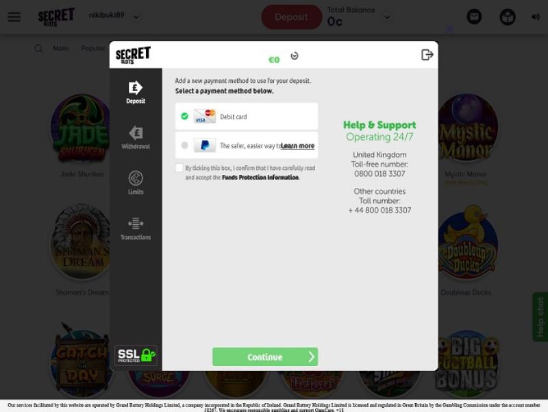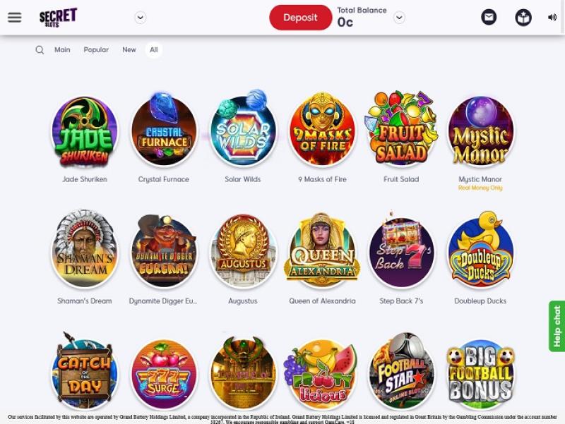 O SecretSlots é um pequeno cassino com uma pequena quantidade de jogos de vários provedores. Percebi que os jogos do WMS apresentam problemas de conexão, pois você não consegue jogar nenhum deles por mais de 10 minutos e será desconectado do jogo.