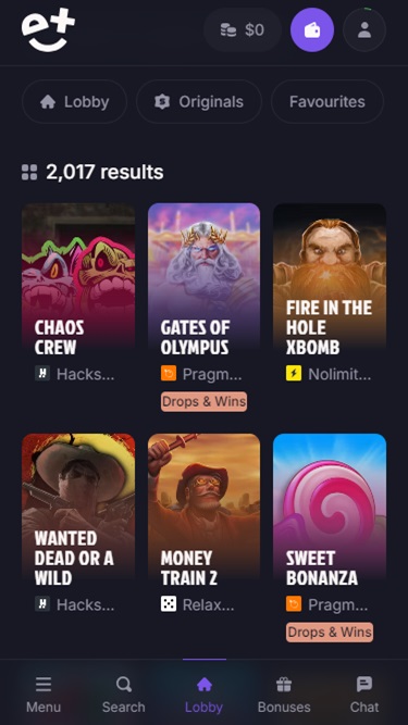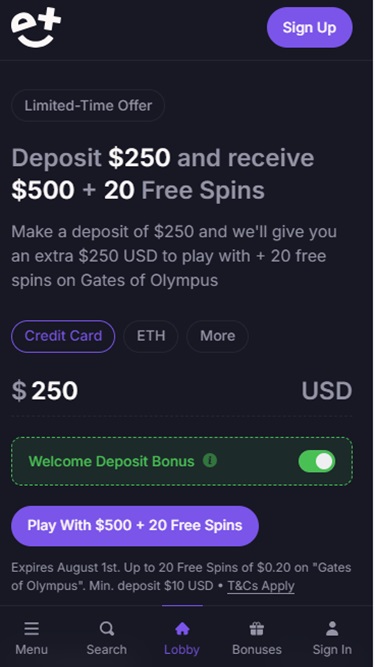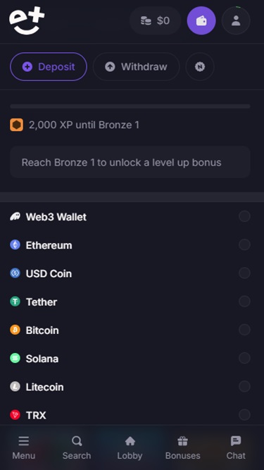 Quanto às opções bancárias, você pode optar por depositar com opções padrão, como MasterCard ou Visa . Você também pode optar por depositar com criptomoedas, já que essa opção se tornou muito popular nos últimos anos e consideramos positivo que as operadoras incluam essas alternativas.