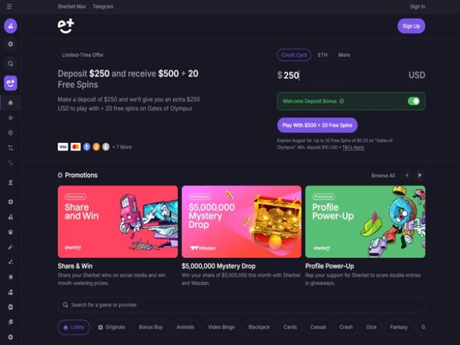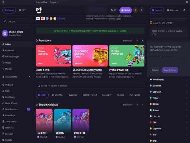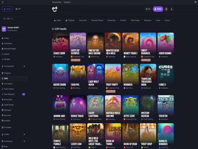 Capturas de tela do Sherbet Casino