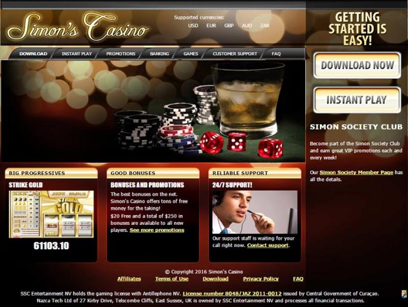 O Simon Says Casino é um site de apostas online pertencente e operado pela Silverstone Overseas Ltd. Foi fundado em 2007 e atende ao mercado de apostas americano, bem como a outras jurisdições. O cassino ganhou reputação por seus jogos da Rival e pelo baixo limite diário de saque de US$ 2.000 em ganhos.Informações do cassino