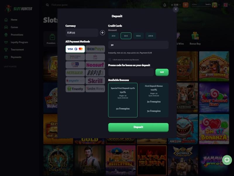 Abaixo está uma lista das promoções atualmente oferecidas no Slot Hunter.