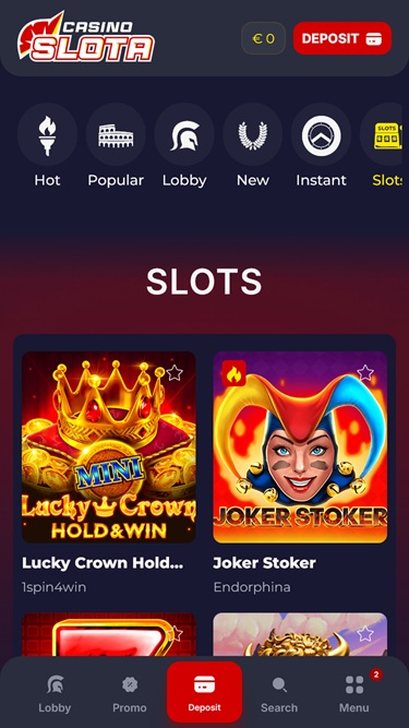 Suponha que você esteja interessado em criar uma conta no Slota Casino. Se você gosta de todos os tipos de jogos de cassino , ficará feliz em saber que a marca oferece uma enorme variedade de opções, desde emocionantes caça-níqueis online, jogos com crupiês ao vivo e jogos de mesa até jogos instantâneos e de crash.