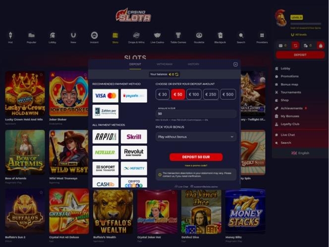 Se a variedade de jogos é sua principal preocupação, você vai se divertir muito navegando por todos os jogos de cassino disponíveis no Slota. O site oferece opções interessantes e exclusivas, com diversos gêneros e categorias que atendem às preferências e gostos de todos os jogadores.
