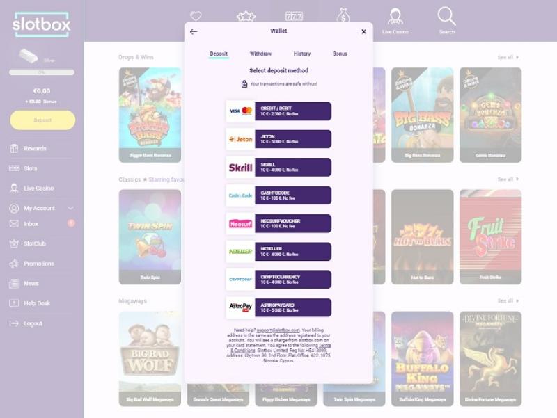 Slotbox é um site de cassino online pertencente e operado pela Slotbox NV, uma empresa constituída sob as leis de Curaçao, licenciada e regulamentada pela Antillephone NV.