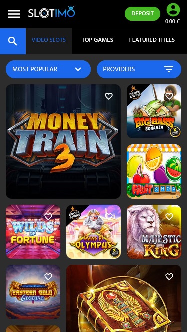 Aqui, o nome da marca diz tudo! A seção de jogos de caça-níqueis do Slotimo Casino certamente atrairá um grande público de jogadores, já que oferece uma enorme variedade de jogos de alta qualidade, como: Big Bass Bonanza, Gates of Olympus, Cheeky Fruits 6 Deluxe, Money Train 3, Bonanza, Wild Ca$h, Majestic King, Wanted Dead or a Wild, 20 Boost Hot, Rich Wilde and the Book Of Dead, Lady Wolf Moon, Wilds of Fortune, Eastern Gold Deluxe, Fruit Shop, Book of Rebirth e Aloha! Natal, Livro de Ramsés, Coringa de Gêmeos, Garota dos Olhos Dourados, Link Incrível Zeus, Hell Hot 100, Trem do Dinheiro 2, Tesouro Maia, Poder dos Deuses: Hades, Livro do Petróleo, Starburst XXXtreme, Starburst, A Busca de Gonzo Megaways, Rei Primata, Kaiser, Livros dos Semideuses II, Rolos da Fortuna, Riquezas de Porquinho, Poder dos Deuses Valhalla, Fogo no Buraco, Quebra-Cabeças de Dragões, Preciosos 7, Fortuna de Sekura, 9 Potes de Ouro, HallowReels, Segredos do Nilo, Lula das Profundezas, Dragão vs Fênix, A Busca de Gonzo, Caça à Recompensa, Lobo Mau Megaways, Tundra Selvagem, San Quentin, Xerife Colt, Livro de Oz, É um Coringa, Gemas Estelares Astecas, Flores Tailandesas, Caça-níqueis em Chamas, Impressionante Hot 20 Deluxe Remasterizado, Fortuna de Zaida, Guerras Espaciais 2, Rolo Keeper, Apache Way, 10001 Noites, Rock'n' Lock, Mistérios Majestosos, Deuses de Troia, Bass Boss, Bee Hive Bonanza, Livro de Diamantes, Lenda da Espada, Livro do Renascimento, Livro dos Gatos, O Livro de Amaterasu, A Máquina dos Sonhos, Caçadores de Relíquias e o Livro da Fé...
