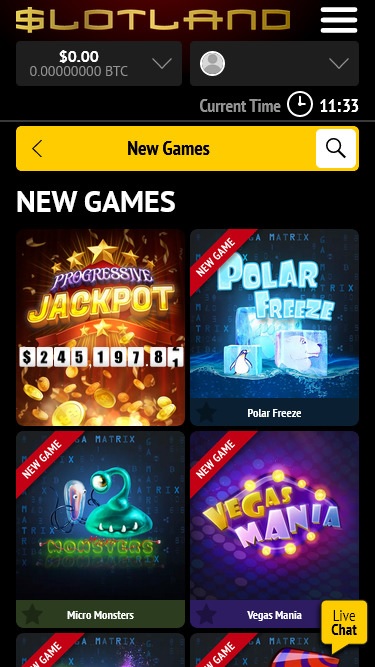 Pelo site deles, fica claro que o Slotland tem como público-alvo jogadores que buscam bônus. Os termos e condições são bem interessantes. Eles também facilitam o jogo, permitindo jogadores dos EUA e aceitando depósitos em Bitcoin . Eu estava preocupado em não conseguir aproveitar o bônus de boas-vindas porque tinha uma conta muito antiga, talvez da década de 90. No entanto, eles não aceitaram meu login, então presumo que se esqueceram de mim. Por isso, criei uma nova conta no início de novembro de 2022, e esta avaliação se baseia nela.