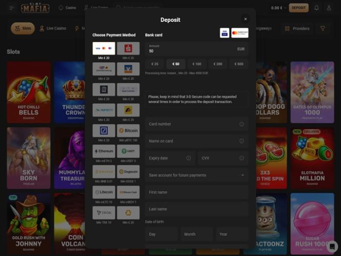 O SlotMafia é um cassino que aceita criptomoedas e opera sob licença de Curaçao, oferecendo um número impressionante de jogos. Se você quer tentar a sorte nas máquinas caça-níqueis ou prefere a emoção de jogos de mesa como blackjack , roleta, pôquer ou bacará, com certeza encontrará algo do seu agrado!