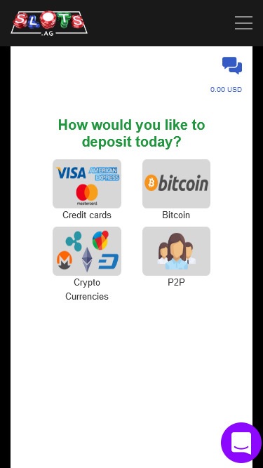 As opções bancárias disponíveis no Slots.ag podem ser visualizadas abaixo.