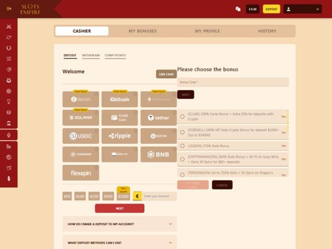 O Slots Empire Casino possui licença para operar jogos de azar na jurisdição de Curaçao.