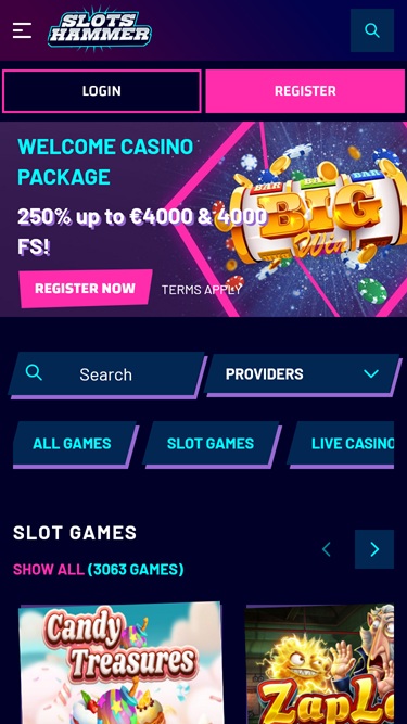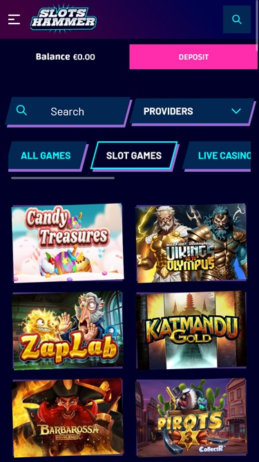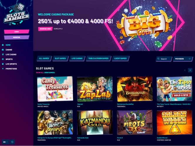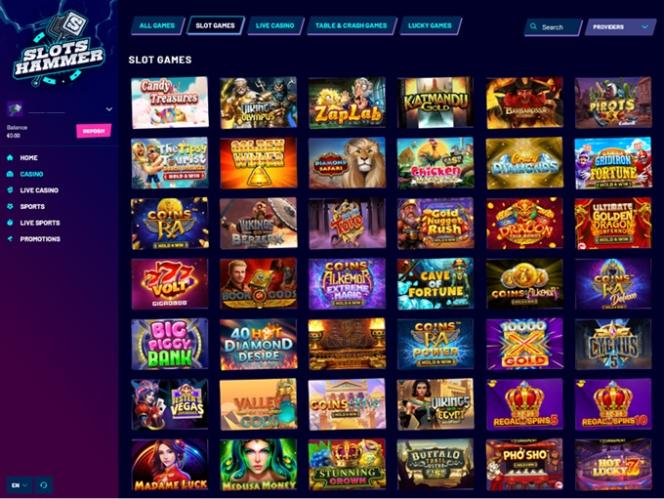 Naturalmente, o mesmo se aplica ao Slots Hammer. Aqui, os jogadores terão acesso a uma seleção robusta de jogos de cassino e fornecedores de software. A plataforma é alimentada por mais de 60 estúdios de jogos exclusivos, a maioria dos quais reconhecidos como alguns dos melhores do mercado.