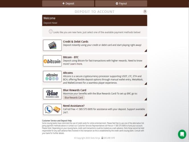 No momento em que esta análise foi escrita, o cassino Slots Ninja não possuía um programa de fidelidade ou qualquer outro tipo de clube VIP disponível para os jogadores.