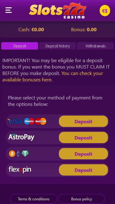 Levando tudo em consideração, o Slots777.Casino é uma plataforma de jogos de azar com um visual excelente e que funciona perfeitamente, sem problemas.