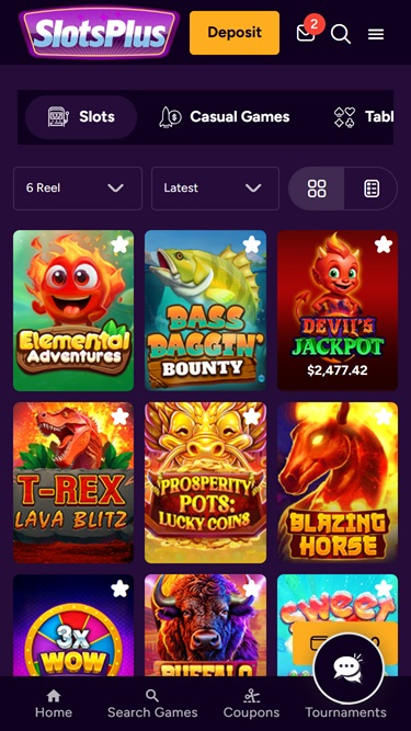 O Slots Plus é alimentado por Real Time Gaming and Spinlogic Gaming , que oferece aos jogadores dezenas de opções de jogos. O cassino pode ser acessado por meio de uma plataforma web, software para download ou site para dispositivos móveis.