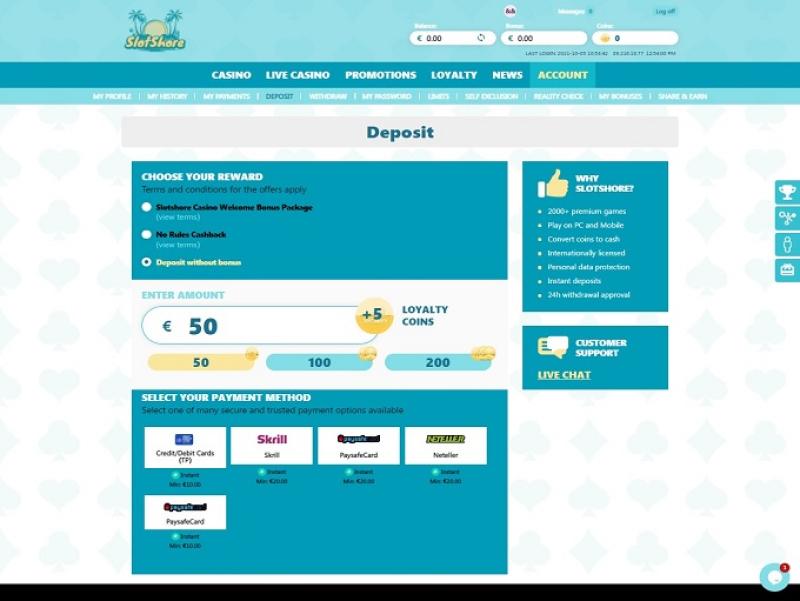 O SlotShore possui uma longa lista de jogos de cassino online populares em seu portfólio. A operadora coopera com grandes nomes do software de cassino, como Microgaming, NetEnt, Evolution Gaming , Ezugi e muitos outros, então não é surpresa que a biblioteca de jogos esteja repleta de centenas de slots e outros produtos de jogos de azar populares, otimizados para todos os dispositivos disponíveis.